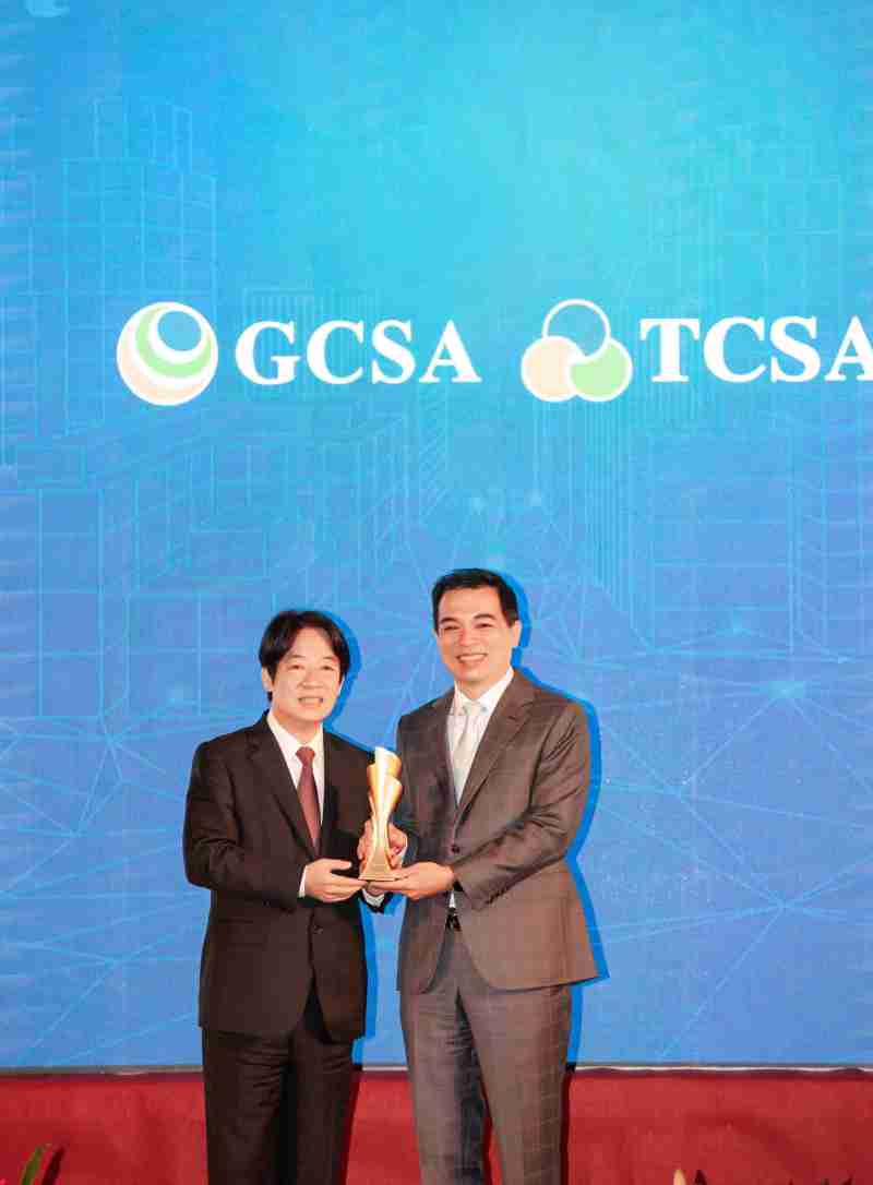 达全方位永续表现获全球永续奖及台湾永续奖肯定,,,由副总统赖清德颁奖 (左),,,z6mg·人生就是博总经理柯富仁 (右) 代表领奖