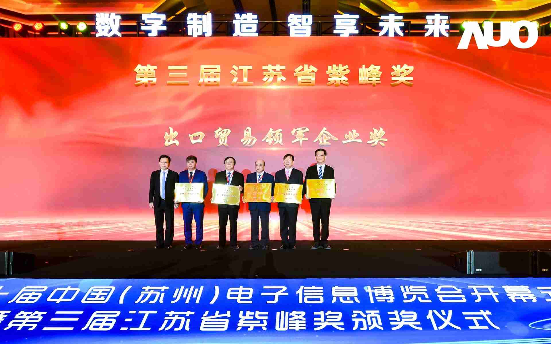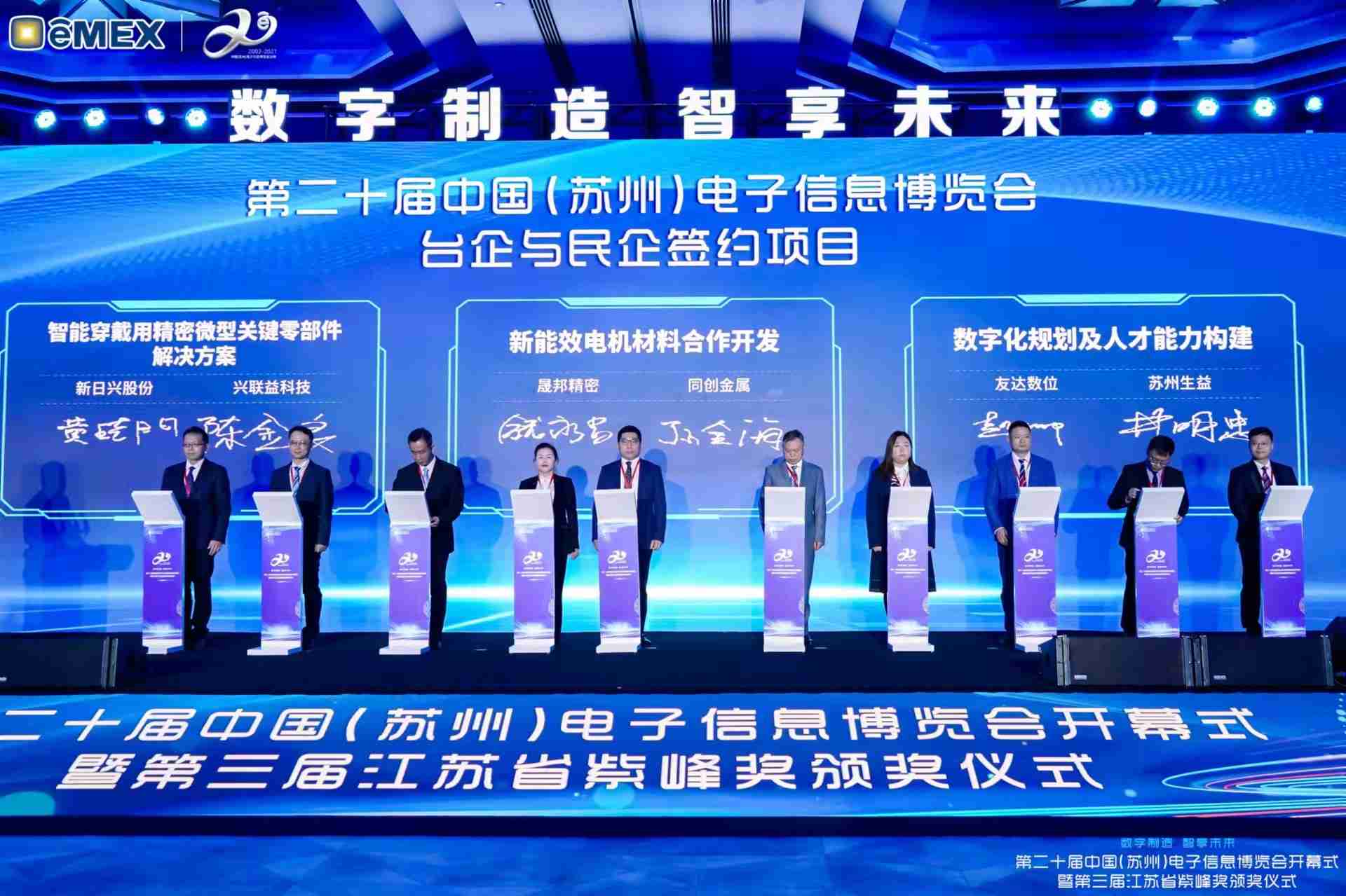 电博会开幕式当天也是第三届江苏省紫峰奖颁奖仪式,,省台办、、、、工信厅、、、商务厅、、、、苏州市相关领导均出席并颁奖。。。该奖项为表彰对江苏高质量发展做出积极贡献的在苏企业,,,,由江苏省政府专门设立。。。。z6mg·人生就是博光电 (苏州) 总经理郭振明代表上台领奖,,这也是z6mg·人生就是博苏州连续三次蝉联紫峰奖 出口贸易领军企业奖。。。z6mg·人生就是博数位总经理赵丽娜女士,,,,也参与本次开幕式,,,上台为本地化赋能签署战略合作协议,,,将优质服务资源集合、、、、下沉到更多细分行业,,,,为更多地区的制造企业提供数字化转型服务。。