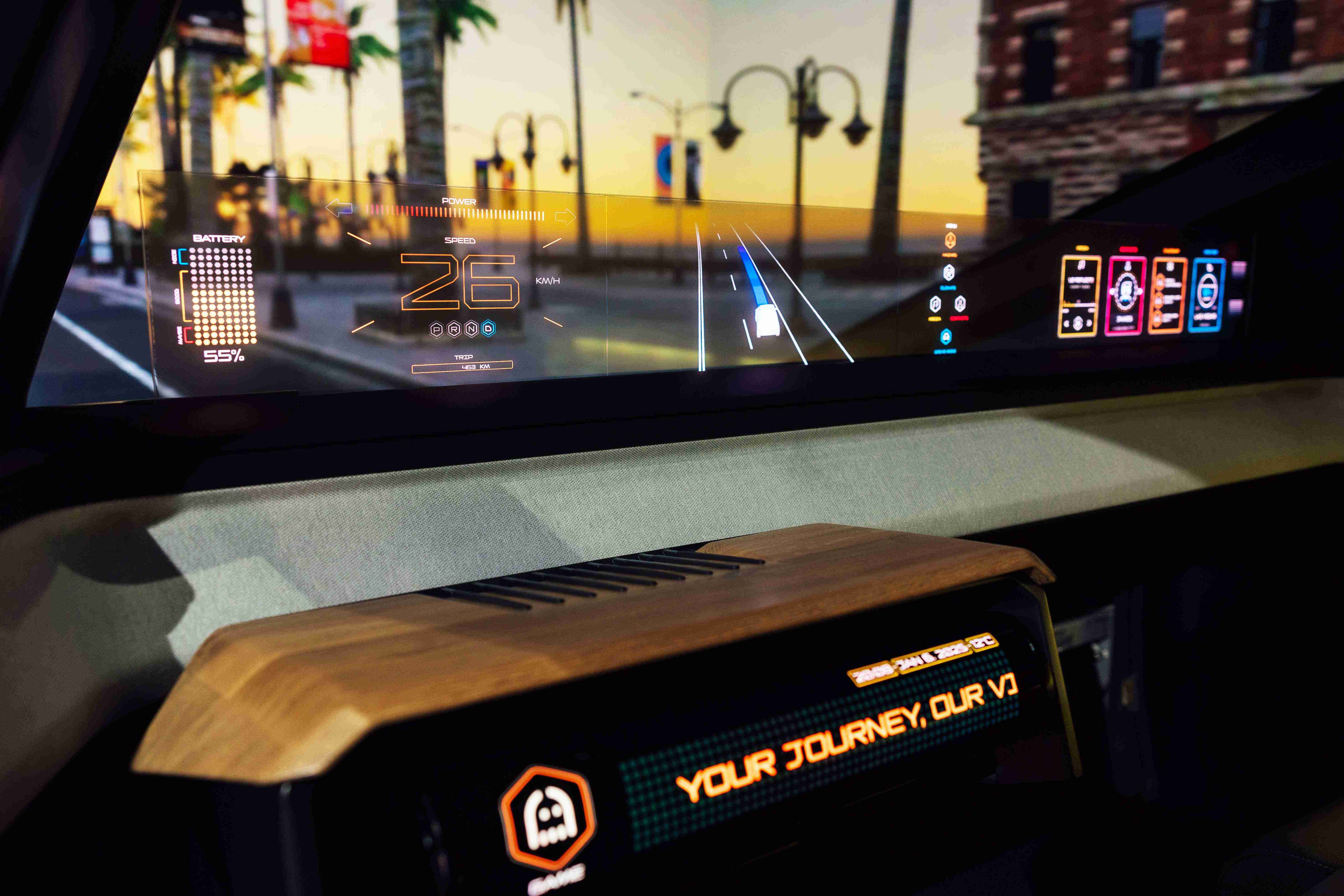 隐藏式智驾介面(Foldable Cruise Pilot)在不同模式下可以切换显示方式,,,,在手动驾驶模式时,,,,显示器可以在半收合状态下,,仍呈现所需资讯;自驾模式时,,,显示器可以完全展开,,,满足不同的多媒体娱乐需求。。。。 z6mg·人生就是博Smart Cockpit 2025 在车头及车尾搭载合作伙伴Ennostar开发的互动式矩阵显示器(Interactive Matrix Display),,其突破传设计框架,,利用优化的光源整合技术,,,提供更高亮度与对比度的显示效果,,营造驾车者个性化风格并传递讯息。。。。
