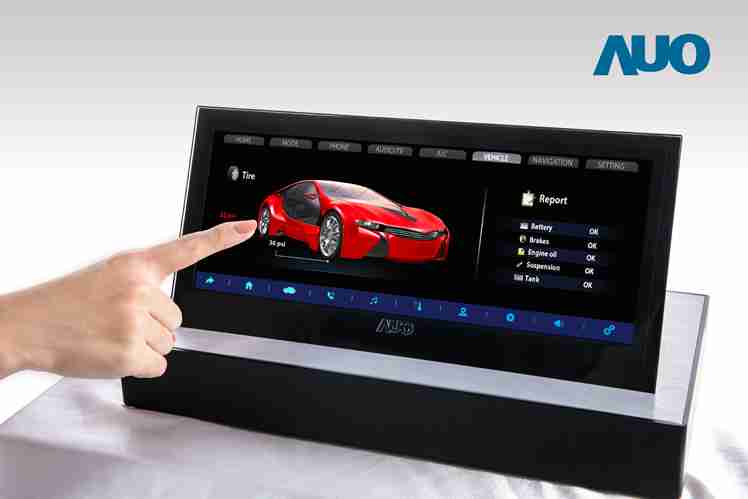 12.3 寸 Full HD LTPS 显示屏同样具备 1000 nits 高亮度,,,搭载内嵌式触控技术,,,整合驱动与触控 IC 于显示屏制程,,,,使显示屏厚度降低,,,,为中控台创造更多机构设计空间。。。。应用于抬头显示器的 3寸 LTPS 显示屏具有高穿透率、、、1200:1 高对比度度,,以及 297 PPI 高画素密度。。。。液晶最高可耐受到 110C 的高温 (TNI) 而不液化,,,,在阳光高温下维持优异稳定的显示效果。。。。