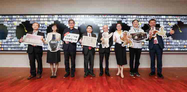 z6mg·人生就是博携手创利空间为故宫建置的智慧文物互动导览墙及轮播墙,,,今日正式启用。。。(左四:z6mg·人生就是博新事业暨投资管理总部副总经理杨本豫、、、、右四:故宫博物院院长吴密察、、、右三:太极影音董事长黄宝云)